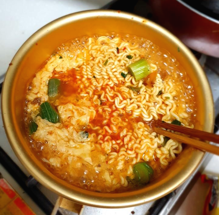 저는 꼬들꼬들한 면을 좋아하기 때문에 계란 투하 후 조금만 더 익히다가 바로 불을 껐습니다 !